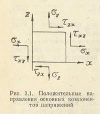 Напряжение рп может быть разложено на нормальную sn и касательную tn к площадке составляющие. Компоненты напряжения на площадках, нормальных к координатным осям, называются основными. Так, например, напряжение на площадке с нормалью, совпадающей с направлением оси х«px, может быть выражено через основные компоненты напряжения в виде