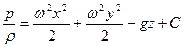 Равновесие жидкости в центробежном поле На жидкостные частицы, находящиеся во вращающемся с постоянной скоростью вокруг вертикальной оси цилиндрическом стакане, действуют сила тяжести mg центробежная сила X=w2r cos(r, x); Y=w2r cos(r, y); Z=-g Или X=w2x; Y=w2y. Подставим эти выражения в (4.3) и проинтегрируем последнее. Получим