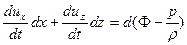 где выражение dФ = Xdx+Zdz справедливо в случае, когда поле массовых сил потенциально. Подставим в (5.4) выражения (5.3). Прибавим к левой части и вычтем из нее слагаемые