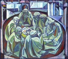 Якось в одному інтерв'ю Панаса Заливаху запитали: «які свої твори Ви вважаєте найцікавішими?» На що мистець відповів: «найцікавішим своїм твором можливо є я сам – адже я віднайшовся, не занесло і не замучило, як того „Блудного сина України" із збірки есеїв Є. Сверстюка». І то є свята правда, пролог до творчости сімдесятидвохрічного українського майстра з Івано-Франківська. Естетичні підвалини його творчости годі відокремити від етичної позиції українця-патріота, що, з ласки Провидіння, відчув у собі одного разу могутній і прекрасний поклик свого тисячолітнього степового роду. Сталося це в пам'ятні для нової української історії шістдесяті роки в колі так добре відомих тепер людей, котрі гуртувалися навколо київського Клюбу творчої молоді: Алли Горської, Івана Світличного, Євгена Сверстюка, Віктора Зарецького, Івана Дзюби... Далі було випробовування «малою зоною» – табором для політичних в'язнів у Мордовії і повернення в 1970 р. до Івано-Франківська – населений пункт все тієї ж, але «великої зони» з її пасками, потаємним відреченням декого з колишніх колеґ по ремеслі, відчуженням і наглядом навколо, а ще камінням вночі, кинутим по вікнах майстерні на неопалюваному горищі... Час здобуття Україною Незалежності, на рівні з іншими пам'ятними подіями кін. 1980 – поч. 1990 років, означився виставками Панаса Заливахи. Спочатку в Національному музеї у Львові, згодом в Івано-Франківську, де в 1962 р. було накладено арешт на першу його персональну виставку, а далі Київ, Канів, Харків, Тернопіль... Здається, що визнання, підтверджене присудженням йому у 1995 р. Державної Премії України ім. Тараса Шевченка й активна участь мистця в суспільно-політичному русі останніх років, щасливо замкнули коло. Але це далеко не так. Теперішня виставка малярства Панаса Заливахи у Великій Британії вперше презентує його творчість поза межами України в такому обсязі. Це новий поштовх як для самого автора, так і для сучасного українського мистецтва, яке помалу вливається до живої течії всесвітніх цивілізаційно-культурницьких потоків. Експозиція представлена роботами 1970–90 років, які складають невелику частку напрацьованого доробку, що обчислюється сотнями полотен у техніках олійного й темперного малярства, графікою, керамікою, різьбою в дереві, колажами з використанням різних матеріялів, а також власноруч виконаних протягом 1970–80 років монументальних робіт оздоблення багатьох громадських закладів в Івано-Франківську. Згадаємо також знищений з ідеологічних причин вітраж з образом Тараса Шевченка для вестибюлю Київського Державного університету та твори, які загинули після ув'язнення мистця. Якою б різнорідною не видавалася на перший погляд сюжетна канва творів Панаса Заливахи, вона міцно тримається небагатьох, але досить усталених чи точніше добре усвідомлюваних і виплеканих внутрішньо тем. Одночасно з відмовою від залишків натуралізму та жанрового розмежування академічної школи в ранній період творчости, мистець звільнявся від дрібноти й спонтанности при обиранні сюжетів для своїх робіт. Рідко котра з них, хоч би як близько вона не стосувалася особистих переживань майстра, є прямою ілюстрацією його власної долі. «Мистець є мітотворець, що проявляє себе в образній тріяді – особистість, національність, вселюдськість» – кредо Панаса Заливахи, що невтралізу