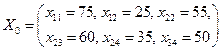 Таблиця заповнюється починаючи з лівого верхнього кута (північно-західного кута), рухаючись далі по рядку вправо, або по стовпчику вниз. У клітинку (1.1) заноситься менше з чисел Якщо Якщо Заповнивши клітинку (1.2). або (2.1), переходять до заповнення третьої клітинки або по другому рядку, або по другому стовпчику. Цей процес продовжують до повного вичерпування продукції у пунктах, або повного задоволення потреб споживачів. Остання заповнена клітинка виявиться в останньому План, отриманий методом північно-західного кута, буде опорним планом системи обмежень транспортної задачі. Приклад 4. Методом північно-західного кута знайти опорний план ТЗ, умова якої задається таблицею: