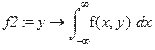 > f2:=y->int(f(x,y),x=-infinity..infinity);f2(y);