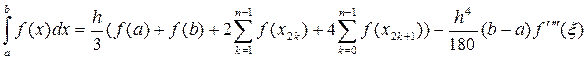 Оцінка похибки чисельного інтегрування за ф. Сімпсона (4) має вигляд: