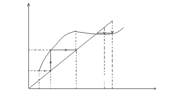 Підставляємо x0 в праву частину (1) і знаходимо перше наближення x1=j(x0) (3) x2=j(x1) (4) Рекурентна формула методу ітерацій: xn+1=j(xn) (5) Вияснити, чи збігається ітераційна послідовність. Якщо збігається, то xn*= якщо ні, то процес ітерацій треба замінити іншим. Можна показати, що метод ітерації можна застосовувати, якщо