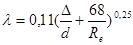 l Шифринсон формуласы бойынша аныќталады (Re – Рейнольдс саны; V – жылдамдыќ; n - кинематикалыќ коэффициент; l - Дарси коэффициенті; L – ќўбыр ўзындыєы; d – диаметр; D - бўжырлыќ)