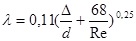 Ўзындыќ бойынша кедергілік коэффициентін (l) аныќтау їшін Альтшуль формуласы(Re – Рейнольдс саны, D - бўжырлыќтыѕ биіктігі, d – диаметр)