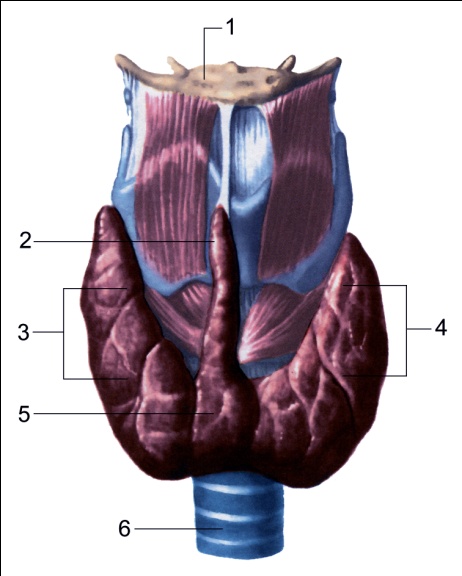 Щитовидная железа. 1. Подъязычная кость. 2. Пирамидальная долька. Щ И Т О В И Д Н А Я Ж Е Л Е З А.