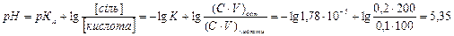 Задача 1. Як зміниться рН буферного розчину після додавання 30 см3 0,2 М розчину NaOH до суміші, що складалась із 100 см3 0,1 М розчину СН3СООН та 200 см3 0,2 М CH3COONa? (Ксн3соон = 1,78·10-5). Розв’язування. За формулою Гендерсона – Гассельбаха обчислимо рН буферного розчину: