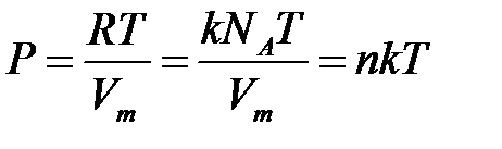 М – молярна маса. Тут враховано, що V =n Vm. Рівняння Менделєєва-Клапейрона є рівнянням стану ідеального газу, яке пов’язує основні термодинамічні параметри P, V, T. Інший вигляд рівняння стану можна отримати уведенням нової сталої, яка називається сталою Больцмана: За нормальних умов (P = PА = 1,03×105 Па, T = 273 К) концентрація молекул ідеального газу дорівнює: