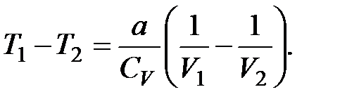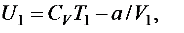 Внутрішня енергія реального газу U складається з кінетичної енергії теплового руху його молекул (визначає внутрішню енергію ідеального газу, що дорівнює U к = CVT для одного моля) і потенціальної енергії міжмолекулярної взаємодії U n. Потенціальна енергія реального газу зумовлена лише силами притягання між молекулами, які приводять до виникнення внутрішнього тиску на газ Вона зростає зі збільшенням температури й об’єму газу.Якщо газ розширюється без теплообміну з навколишнім середовищем і не виконує роботу, то на підставі першого закону термодинаміки одержимо, що