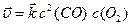 Приклад 1. За законом діючих мас запишіть кінетичні рівняння прямої та зворотної реакцій в оборотній системі: 2СО(г) + О2(г) Як і у скільки разів зміниться швидкість реакцій, якщо об’єм газової суміші зменшити у три рази? Вкажіть напрямок зміщення рівноваги. Розв’язання. Реакція належить до гомогенних, тому що всі реагуючі речовини перебувають у газовій фазі. За законом діючих мас запишемо кінетичні рівняння прямої та зворотної реакцій (6.12), (6.13):