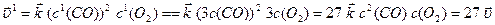 Зі зменшенням об’єму системи у 3 рази концентрація кожної речовини збільшується у 3 рази: с1(СО) = 3с(СО); с1(О2) = 3с(О2); с1(СО2) = 3с(СО2) За нових концентрацій швидкості реакцій дорівнюють: