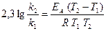 Підставляємо значення Т2, Т1 та газової сталої і визначаємо енергію активації реакції: