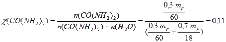 Розрахуємо молярну частку карбаміду у розчині (7.5):
