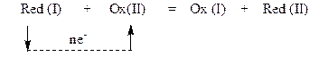 Якщо позначити відновлену та окиснену форми однієї речовини – Red (I) та Ox (I), а іншої речовини – Red (II) та Ox (II), то схема окисно-відновної реакції має вигляд: