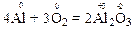 За правилом електронного балансу знаходимо коефіцієнти біля відновника та окисника: перед атомом алюмінію в простій речовині коефіцієнт дорівнює 4, а перед молекулою кисню – 3. Отже, чотири атоми Al віддають 12 електронів, а три молекули O2 приєднують ці 12 електронів. Крім того, число атомів одного і того ж елемента у вихідних речовинах і в продуктах реакції має бути однаковим. Тому із зіставлення числа атомів алюмінію та оксигену у лівій і правій частинах рівняння знаходимо, що утворюється 2 молекули алюміній оксиду. Остаточне рівняння реакції: