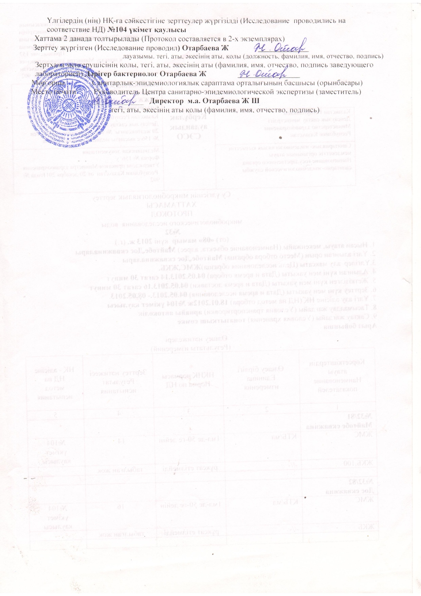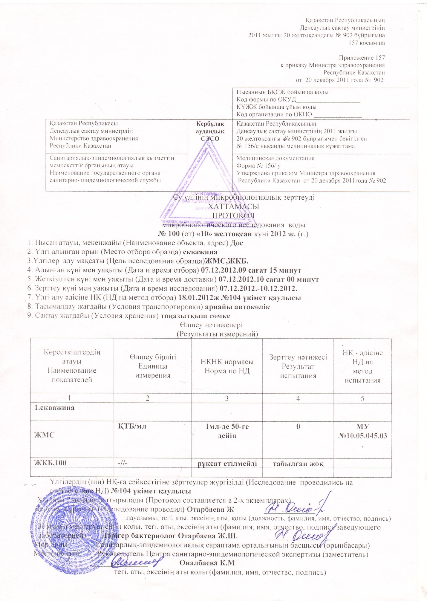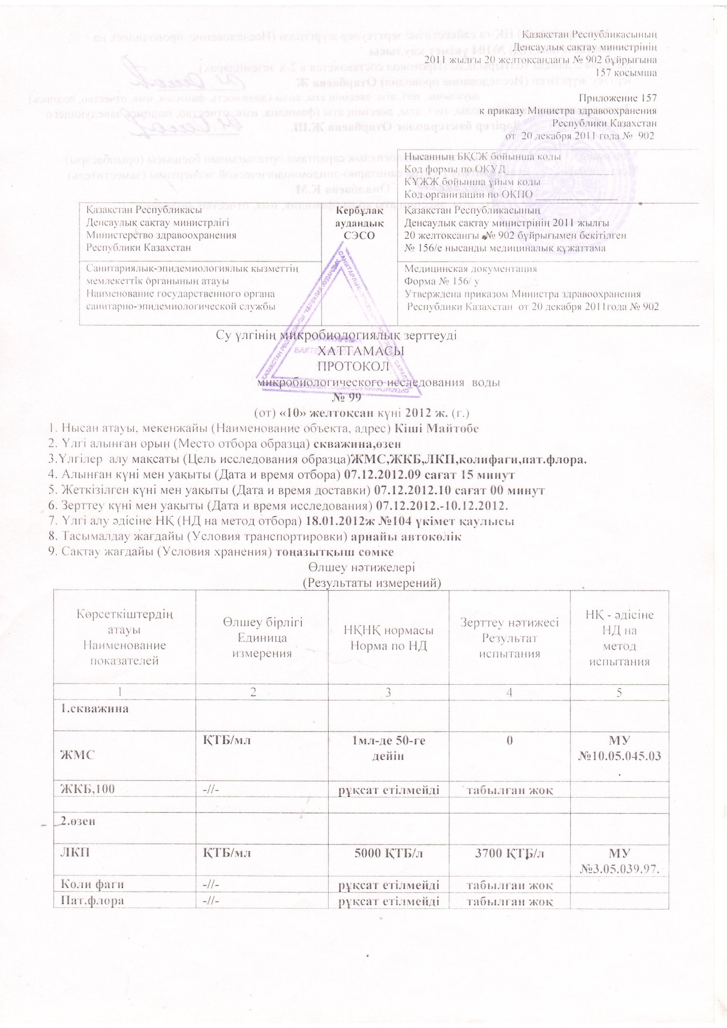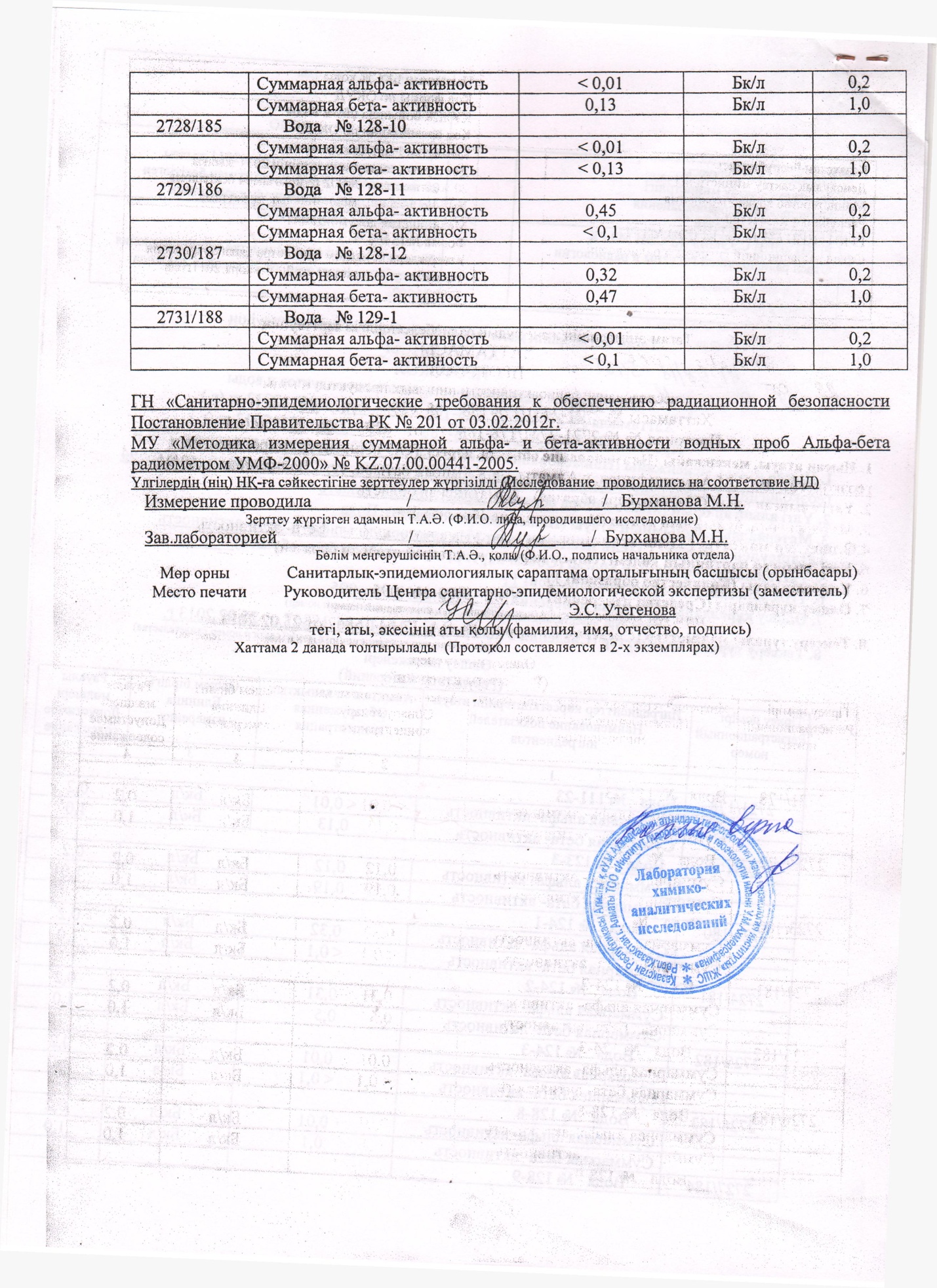 Результаты химических анализов по участкам скважин Киши-Майтобе и Дос (радиология и микробиология)