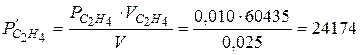 Приклад 4. Визначити загальний тиск газів у посудині об’ємом 25 л, якщо в неї помістити 0,010 м 3 етилену під тиском 60435 Па і 0,020 м 3 метану під тиском 85670 Па. Розв ’ язання. Згідно з законом Бойля-Маріотта