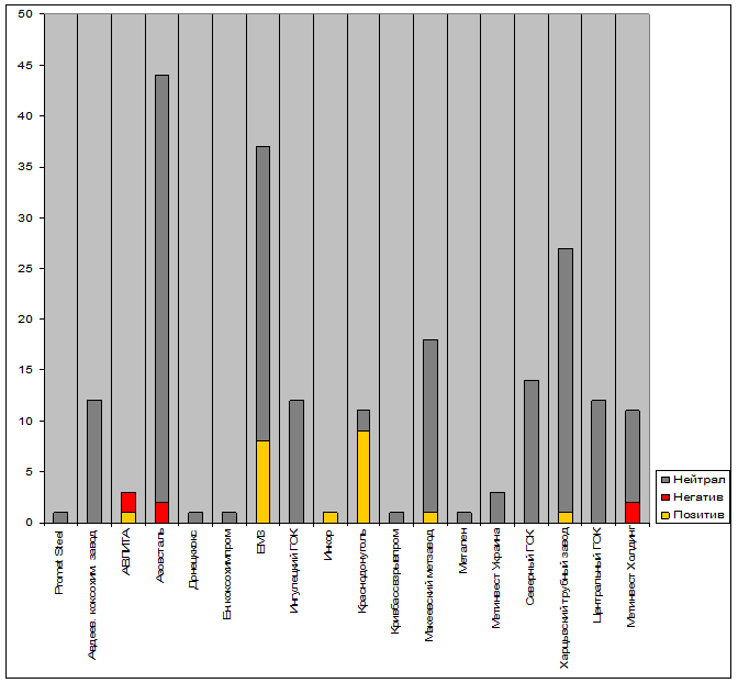 Диаграмма 4.1 Эмоциональное распределение медиаполя по компаниям Холдинга