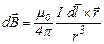 тобто індукція системи струмів дорів- нює векторній сумі індукцій магнітних полів, утворених кожним із струмів окремо. Закон Біо-Савара-Лапласа. Він визначає магнітну індукцію елемента струму