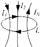 Рис. 49 При α1 ®0 і α2®0 (тобто при переході до необмеженого провідника) формула (4.17) переходить у формулу (4.16) для нескінченно довгого провідника. Циркуляція вектора магнітної індукції – це інтеграл по замкненому контуру L: Якщо контур інтегрування L охоплює кілька струмів, то циркуляція вектора магнітної індукції