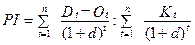 Величина ( Оскільки ставка дисконту означає нормативний рівень дохідності проекту, то за величиною NPV можна зробити судження про доцільність його використання, якщо NPV величина більша чи дорівнює нулю – проект може бути прийнятим до виконання, а якщо менша нуля – його, як правило, відхиляють. Величина NPV менша нуля означає, що при виконанні проекту не забезпечуватиметься дохідність на рівні ставки дисконту, використаної в розрахунках, яка виступає як альтернативна ціна капіталу. Індекс прибутковості (Profitability Index – PI) відображає відносну прибутковість проекту. Обчислюється відношенням суми наведених ефектів (різниця дисконтованих вигід і операційних витрат без амортизаційних відрахувань) до наведеної величини інвестицій (формула (9)):