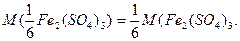Тоді еквівалент ферум(ІІІ) сульфату дорівнює ½ частці частинки Fe2(SO4)3, оскільки вона рівноцінна одному еквіваленту NaOH. Відповідно,