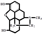 Морфін є найважливішим опійним алкалоїдом (алкалоїд опійного маку), в опії його міститься 3-20%. Має пентациклічну будову і структурну подібність з деякими іншими природними і синтетичними опіоїдами (зокрема, кодеїном, налбуфіном і налтрексоном). У молекулі дві гідроксильні групи – фенольного і спирт ового характеру, які і зумовлюють його хімічні властивості. Основа морфіну погано розчиняється у воді і порівняно добре в органічних розчинниках, якими він екстрагується з лужних водних розчинів (рН=8,6-10,2). Дія на організм. Має сильну болезаспокійливу, виражену снодійну та ейфоричну дію. Гальмує умовні рефлекси і підсилює дію наркотичних снодіючих і місцево анестезуючих засобів. Збуджує блювотний центр і знижує збудливість дихального і кашлевого центрів, гальмує рухову і секреторну активність шлунково-кишкового тракту. Знижує основний обмін. Гідрохлорид морфіну використовують у медицині як знеболюючий засіб. Тривале застосування приводить до наркоманії (морфінізму). Кодеїн - найпоширеніший опійний алкалоїд. Це продукт метилювання морфіну.