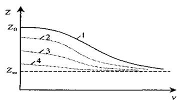 Мал. 2.37. При послідовному сполученні R і С (мал. 2.37а) схема має суттєві розбіжності з дослідом при пропусканні постійного струму. Якщо На мал. 2.38 приведені графіки дисперсії (частотної залежності) імпедансу рослинної тканини: 1 - крива для нормальної здорової тканини; 2 - для нагрітої до З малюнка видно, що крутизна кривої в міру відмирання тканини зменшується, тобто спостерігається зменшення низькочастотного опору, тоді як при високих частотах імпеданс практично залишається постійним. Причиною є те, що при відмиранні руйнуються мембрани -"живі конденсатори", і нежива біологічна тканина володіє суто омічним опором. Вказані особливості використовуються для оцінки фізіологічного стану об'єктів. Як правило, розраховується коефіцієнт дисперсії К, який дорівнює відношенню імпедансу при низьких частотах У нормальних тканинах