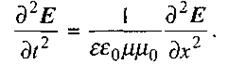 Періодичні зміни електричного чи магнітного поля в деякій області простору дають початок сукупності послідовних взаємопов'язаних перетворень цих полів, котрі охоплюють все нові області простору. Обидва ці поля є вихровими, причому вектори Е та Н розміщені у взаємно перпендикулярних площинах. Електромагнітне поле, яке періодично змінюється, поширюючись у просторі, утворює електромагнітну хвилю. Для ізотропного діелектрика, в якому немає вільних електричних зарядів, з рівнянь Максвелла випливає: Таке ж рівняння можна отримати і для напруженості магнітного поля Н. Рівняння (2.90) свідчить, що напру женість електричного Е (а значить, і магнітного Н) поля задовольняє хвильовому рівнянню, і швидкість поширення електромагнітних хвиль де тоді як в середовищі називають абсолютним показником заломлення середовища. Він показує, у скільки разів швидкість електромагнітної хвилі в середовищі менша, ніж у вакуумі. Розв'язок (2.90) має вигляд плоскої хвилі: