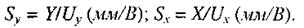 2. Коефіцієнт підсилення за напругою К, який дорівнює відношенню амплітуди напруги на виході до амплітуди вхідного сигналу відповідного підсилювача (Х чи Y):