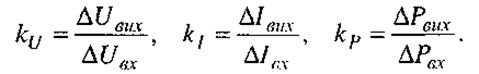 При підсиленні синусоїдальних сигналів, як правило, користуються відношенням амплітуд вхідного і вихідного сигналів: