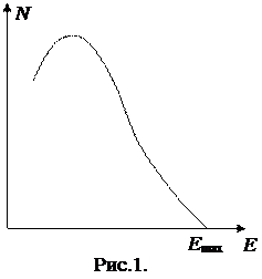 ВИЗНАЧЕННЯ ГРАНИЧНОЇ ЕНЕРГІЇ β -СПЕКТРУ РАДІОАКТИВНОГО ІЗОТОПУ МЕТОДОМ ПОГЛИНАННЯ МЕТА РОБОТИ: визначення енергії β -спектру радіоактивних ядер методом поглинання β -випромінювання. ЗАВДАННЯ: 1) ознайомитися з роботою радіометра-дозиметра МКС-01Р; 2) провести дослідження залежності кількості імпульсів, зареєстрованих приладом, від товщини шару Al; 3) визначити максимальну енергію β -частинок при ПРИЛАДИ І МАТЕРІАЛИ: радіометр-дозиметр МКС-01Р; мікрометр; набір пластинок Al різної товщини. ТЕОРЕТИЧНІ ВІДОМОСТІ На відміну від α - і γ -випромінювання, енергетичні спектри яких дискретні, спектр β -випромінювання є суцільним. Типовий розподіл енергії для спектра β -частинок, представлено на рис.1, де N (E) – число електронів з енергією Е і. Спектри всіх β -випромінювачів подібні до спектру, зображеного на рис.1, відрізняються вони лише максимальним значенням енергії, верхньою межею, яка для різних ізотопів знаходиться в межах від 18 кеВ (для