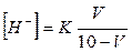 Концентрацію водневих іонів в буферному розчині визначають за формулою: де К - константа дисоціації оцтової кислоти (1,8*10-5); С1, V1, - об'єм і еквівалент розчину кислоти; С2, V2 - еквівалент і об'єм розчину солі. На основі знайденої концентрації водневих іонів буферного розчину вираховують рН за формулою: рН = -lg [Н+]. Одержані дані занести в таблицю.