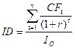 де 6. Індекс (коефіцієнт) дохідності (ID) дозволяє також виявити співвідношення між обсягом інвестиційних витрат з чистим грошовим потоком по проекту, і при одночасних витратах розраховується за формулою: