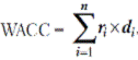 де WACC — середньозважена вартість інвестиційного капіталу; n — кількість використанних джерел фінансування; ri — необхідна доходність (норма прибутку, вартість капіталу) по капіталу, одержаному з i –го джерела; di — вага (частка) капіталу (фінансування, інвестиційних ресурсів), одержаних з i –го джерела.
