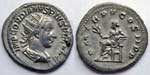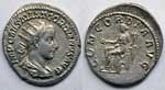 Double denarius, Rome mint, Third issue, March-May 240, AR 4,43g. IMP GORDIANVS PIVS FEL AVG Radiate bust right. Rev. CONCORDIA MILIT Concordia seated left, holding patera and double-cornucopiae. RIC 65 (IV, III, 23); RSC 62 (IV, 2). Good Very Fine / Good Very Fine.
