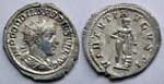 Double denarius, Antioch mint, AD 238 - 239, AR 4,48g. IMP CAES M ANT GORDIANVS AVG Radiate bust right. Rev. VIRTVS AVG Virtus in military dress, standing left, holding sceptre & resting right hand on shield. RIC 205 (IV, III, 36); RSC 381 (IV, 10). Extremely Fine / Extremely Fine.