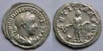 Denarius, Rome mint, Fourth issue, AD 241 - 243, AR 3,06g. IMP GORDIANVS PIVS FEL AVG Laureate bust right. Rev. LAETITIA AVG N Laetitia standing left, holding wreath and rudder. RIC 113 (IV, III, 26); RSC 120 (IV, 4). Extremely Fine / Extremely Fine.