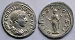 Denarius, Rome mint, special issue for marriage of Gordian and Tranquillina, Summer AD 241, AR 2,75g. IMP GORDIANVS PIVS FEL AVG Laureate bust right. Rev. SALVS AVGVSTI Salus standing right, feeding snake held in both arms. RIC 129a (IV, III, 28); RSC 325 (IV, 9). Extremely Fine / Extremely Fine.