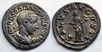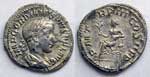 Denarius, Rome mint, Fourth issue, AD 241 - 243, AR 3,07g. IMP GORDIANVS PIVS FEL AVG Laureate bust right. Rev. VIRTVTI AVGVSTI Hercules, naked, standing right, right head on hip and resting left on club set on rock; lion’s skin beside club. RIC 116 (IV, III, 27); RSC 403 (IV, 10). Hill, Monuments 161. Good Very Fine / Good Very Fine.