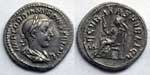 Denarius, Rome mint, special issue for marriage of Gordian and Tranquillina, Summer AD 241, AR 3.39g. IMP GORDIANVS PIVS FEL AVG Laureate bust right. Rev. SECVRITAS PVBLICA Securitas seated left, holding sceptre and supporting head on left hand. RIC 130 (IV, III, 28); RSC 340 (IV, 9). Extremely Fine / Good Very Fine.