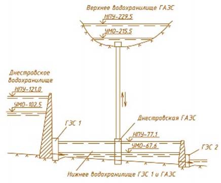 Рис. 2. Схема Днестровской ГАЭС, ГЭС 1 и ГЭС 2