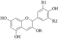 Загальна формула антоціанів Зазвичай, вони надають фіолетового, синього, коричневогочервоного забарвлення. Колір антоціанових барвників залежить від комплексоутворення з іонами металів, а також від рН середовища. Антоціанові барвники застосовують у харчовій промисловості (Е163). Одержують їх з рослинної сировини, що має, як правило, фіолетове, або темно-синє забарвлення: соку бузини, чорноплідної горобини, темних сортів винограду, червонокачанної капусти. Для одержання антоціанових барвників з рослинної сировини використовують забарвлені рослини або їх частини.