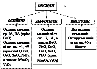 1 Взаємодія з кислотами з утворенням солей та води: ВaO + 2HNO3 = Ba(NO3)2 + H2O. 2 Взаємодія з кислотними оксидами з утворенням солей: СаO + SO3 = CaSO4, (SO3 + H2O → H2 SO4). Для написання формули кислотного залишку необхідно до формули кислотного оксиду додати молекулу води, утворивши формулу кислоти. 3 Взаємодія з амфотерними оксидами (гідроксидами) з утворенням солей: Na2O + Cr2O3 = 2NaCrO2, (Cr2O3+ H2O → H2Cr2O4 = 2H CrO2). У наведеній реакції амфотерний оксид Cr2O3 проявляє кислотні властивості.