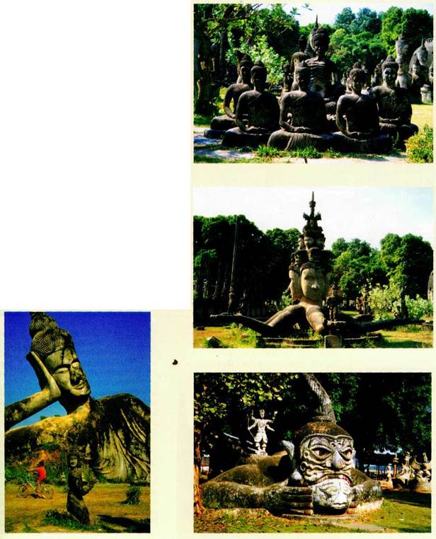 Индонезия — государство на островах Малайского архипелага и в Западной части острова Новая Гвинея. В первых веках новой эры на Малайском архипелаге распространились буддизм и индуизм, вместе с тем усилилось и влияние индийской культуры. Самые ранние из известных сооружений находятся на Яве, одном из крупнейших островов Индонезии. Эти восемь индуистских храмов, возведённых на плато Дьенг (VII—VIII вв.), посвящены богу Шиве. Храмы напоминают ратхи в Махабалипураме. На острове Ява ИСКУССТВО ВЬЕТНАМА И ЛАОСА Древнейшая культура на территории Северного Вьетнама получила название Донгшон. Основные археологические памятники донгшонской культуры относятся к VI—I вв. до н. э. Особую группу находок составляют большие бронзовые барабаны. По-видимому, они использовались в магических обрядах, связанных с культом плодородия и культом мёртвых. Барабаны покрыты геометрическим орнаментом и сценами с изображениями танцоров и лодок с людьми. Возможно, эти сцены символизировали переход души человека в загробный мир. Донгшонская культура, в которой отразились религиозные представления древнейшего населения Юго-Восточной Азии, позже растворилась в местных культурах Индокитая. Другой центр художественного творчества находился в Центральном Вьетнаме, где в течение почти полутора тысяч лет существовало государство Тьямпа (II—XV вв.). Искусство этого региона испытало влияние индийской и китайской культур. Древнейшие центры тьямского искусства — Мисон и Донгзыонг. Огромных комплексов, подобных кхмерским, здесь не возводили. Для тьямского зодчества было типичным башенное святилище с залом — калан. В плане оно выглядело прямоугольником. Калан обильно украшали скульптурной резьбой и статуями. Скульптуру тьямов отличает отточенность деталей и мягкость изображения. Такова, например, статуя бога Шивы из Донгзыонга (IX в.), олицетворяющая плодотворящие силы природы. Искусство Лаоса до сих пор мало изучено. Одна из древних построек на крайнем юге Индокитая — кирпичная ступа-тхат Луанг (XVI в.). Лаосская ступа-тхат отличается остроконечной, сильно расчленённой верхней частью, из-за чего образ традиционной буддийской ступы меняется до неузнаваемости. Ват, буддийский монастырь в Лаосе, также имеет своеобразные черты. В него включены павильоны с широкими крышами, которые ступенями поднимаются одна над другой. Для украшения таких построек характерны коньки крыш, вздымающиеся подобно язычкам пламени — тхи. Основным материалом для лаосской скульптуры служило дерево. Широко были распространены покрытые позолотой небольшие деревянные статуэтки Будды. Причёска и ушниша (выступ на темени) Будды превращались здесь в высокую корону, вытянутые мочки ушей — в длинные серьги. Поверхность скульптуры, сплошь украшенная орнаментом, щедро покрывалась драгоценными камнями.