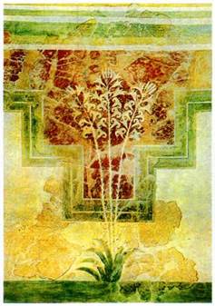 Крит. Лилии в саду. Фреска. Около 1600 г. до н. э. Синяя птица. Фреска. XVI в. до н. э. Кносский дворец.