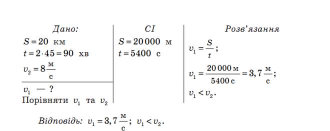 Задача 4. Футболіст за матч у середньому пробігає 20км. Визначте його швидкість і порівняйте її зі швидкістю велосипедиста — 8м/с.
