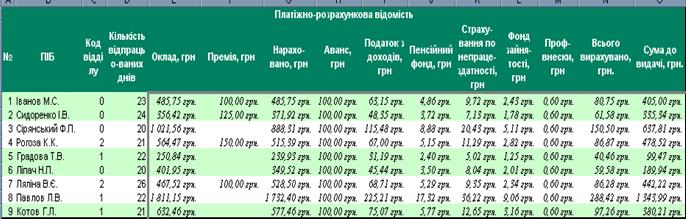 Завдання 1 Відкрити таблицю, створену при виконанні лабораторної роботи 3. Використовуючи функцію ЕСЛИ, обчислити значення податку з доходів на вкладці Зведена відомість, використавши наступні умови: 1) якщо нараховано більше 150 грн., то податок з доходів становить 13% від окладу; 2) якщо нараховано менше 150 грн., то 61,50 грн. від окладу не обкладається податком.