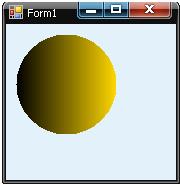 Елементи, перераховані в списку, також мають свої номери. У цьому коді замість елементу BackWardDiagonal поставлена цифра 3. Третій спосіб визначає напрям зміни кольору вздовж умовної лінії, напрям якої, у свою чергу задається величиною кута повороту за годинниковою стрілкою від осі абсцис. Dim rect2 As New Rectangle(10, 10, 100, 100) Dim brush2 As New System.Drawing.Drawing2D. _ LinearGradientBrush(rect2, Color.Gold, Color.Black, 180) e.Graphics.FillEllipse(brush2, rect2)